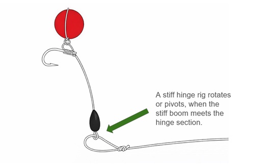 This explains why stiff hinge rigs are particularly effective for pressured carp and pop-up fishing:
